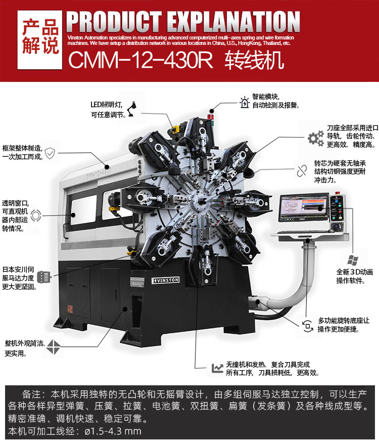新款CMM-12-430R 轉(zhuǎn)線機(jī)無凸輪12軸電腦多功能彈簧機(jī)