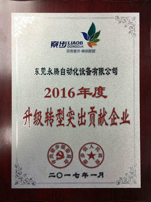 祝賀永騰獲得2016年度升級轉(zhuǎn)型突出貢獻(xiàn)企業(yè)