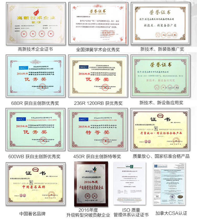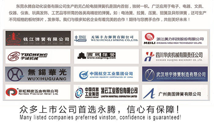永騰彈簧機系列機型現(xiàn)已獲國內(nèi)外專利局多項實用型專利。它調(diào)試快速、省時、省電,回報快。經(jīng)過長時間的生產(chǎn)實踐和多名美籍資深高級工程師設(shè)計并監(jiān)制,現(xiàn)已推出下列彈簧機: